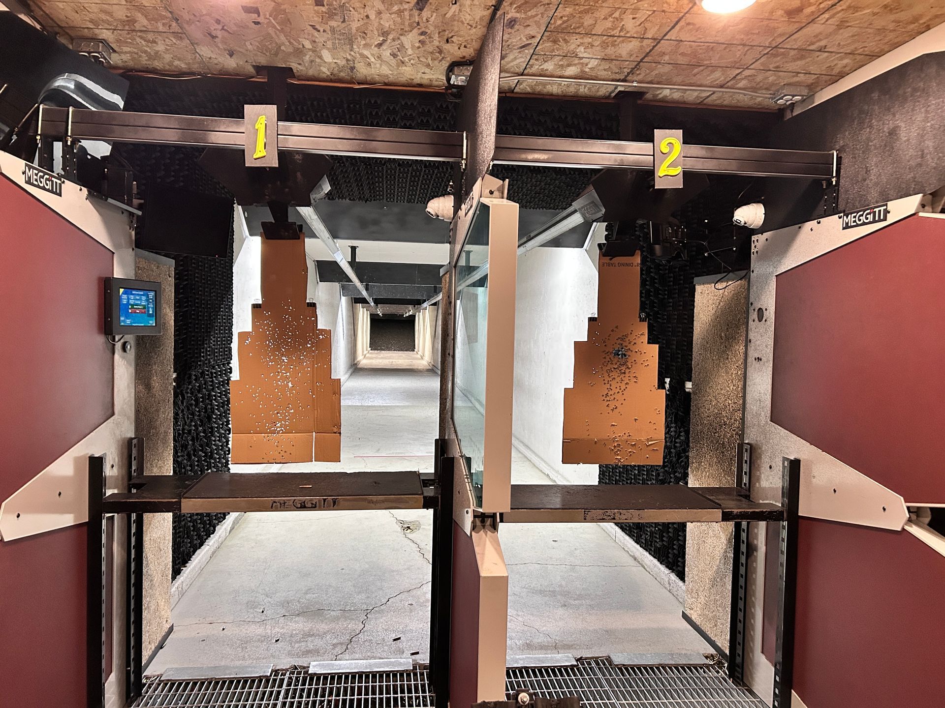 47 yard well lit and fully ventilated rifle range. Fast moving electronic targets. Spotting scope available for fast acquisition. 2 large lanes suitable for bench firing or standing.